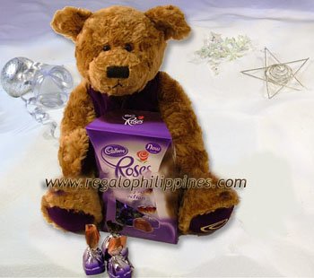 NEW! Roses Truffles with a large cuddly Cadbury bear make a luxurious gift. Our Roses Truffles are individually wrapped in four smooth flavours of Dark Chocolate, Hazelnut, Milk Chocolate and Roast Almond.