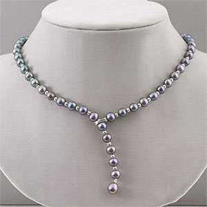 The ultimate elegant addition to your favorite plunging V-neck top — this Lariat necklace boasts black freshwater pearls separated by sparkling sterling silver beads.