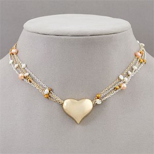 Multi-Strand Two-Tone Pearl Heart Necklace