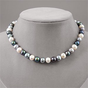 Shine with Tahitian-style in this multicolored freshwater necklace. It's a magical array of green, white, and metallic black when you wrap this sterling silver strand around your neck.
