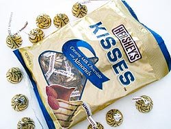 146gm of Creamy milk chocolate with almonds Hershey Kisses, all individually wrapped. Great as a gift or just to keep yourself.