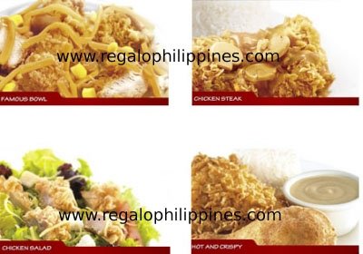 1. CHICKEN ALA KING: Two Original Recipe fillets topped with mushroom sauce all over steaming white rice and sided with corn and a regular drink.