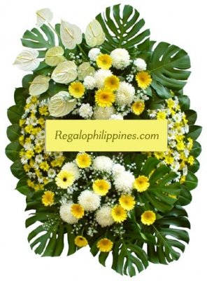 A wreathe in brilliant yellow hues to send your heartfelt condolences during this difficult time. Assortment Of Yellow Flowers.