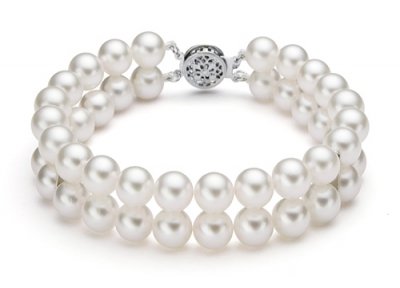 This elegant double strand pearl bracelet is made of lustrous white freshwater pearls. These pearls are high quality, with very high luster and clean surface. The bracelet is strung on silk.
