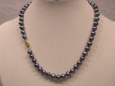 This is a brand new strand of high quality 7-8mm black genuine freshwater cultured pearls. All the pearls in this necklace are matching in color and shape.