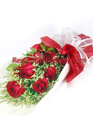 12 red roses White and red cotton paper packaging, white ribbon, fan-shaped bouquet.