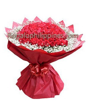 36 red roses, with baby's breath, the red circle packing.