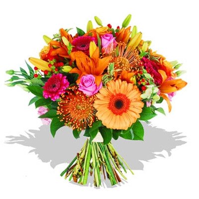 This bouquet certainly lives up to its name! Containing a truly gorgeous variety of rose, some fabulously vivid gerberas and some aziatic orange lilies thrown in too- just in case this concoction needed any more flare! A superb choice.
