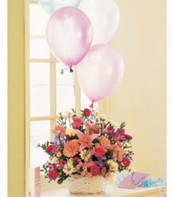 Listen closely to this arrangement and you can practically hear it singing "Happy Birthday." Complete with three latex balloon.