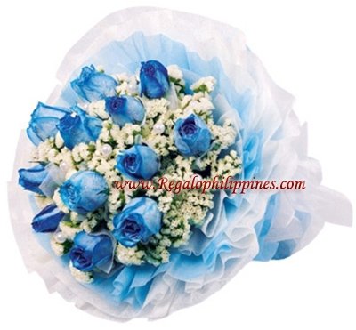 12 Pcs Imported Blue Rose with white fillers in a bouquet.