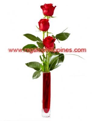 Deeply Devoted Bouquet bursts with elegant simplicity and divine beauty. 3 stem long rose in a vase. VASE INCLUDED