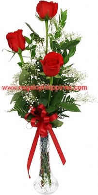 Premium Rose Bud Vase. Send her this romantic bud vase arrangement of 3 premium long stemmed red roses. Romantic suggestion.