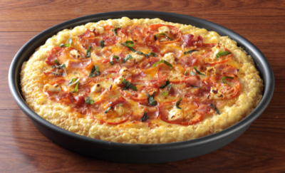 The Bacon Margherita has fresh basil, tomato rings, bacon strips and three kinds of cheese.