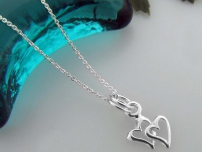 0.90m(width) 16"(length) FLAT THIN ROUND CHAIN W/ OPEN 2 HEARTS OVERLAPPED.