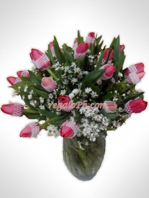 Beautiful and "simply said" light pink tulips are a hip way to show you care. A tantalizing treat in our clear glass vase. This 20pcs pink tulips is a timeless symbol of your affection and caring love.