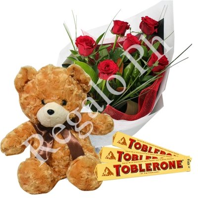A big combo gifts with 6pcs roses, 18 inches stuff toys with 300grm of toblerone is a perfect gift for your loved ones.