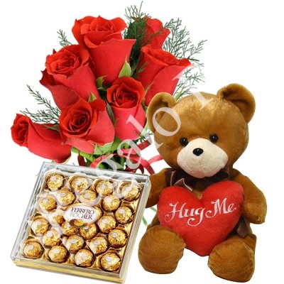 A gift from the heart that will live in her memory forever. This Valentine's Day, treat her to the timeless beauty of radiant red roses. Hand-delivered in a graceful 6pc red roses hand bouquet adorned with a 24pcs, with heart stuff toys it's the essence of romance!