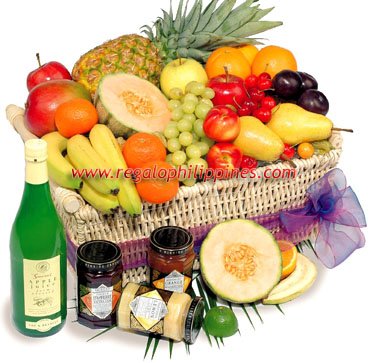 Bring the Christmas cheer to a loved one with this fruit basket containing the most luscious domestic and tropical fruits available such as apples, oranges, grapes, pears, melon, bananas, grape juice and pineapple.