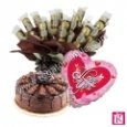 1 dozen of 3 pcs ferero boquet , a regular size cake from goldilocks and 1 mylar heart shape balloons