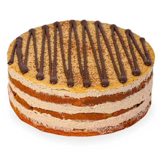 NEW AND IMPROVED Salted Caramel Espresso Tiramisu is a fun twist from the classic tiramisu! Our improved naked cake version is made with delectable layers of tiramisu cake, espresso whipped cream cheese mixture, salted caramel sauce, and chocolate ganache! Lead time 2-3 days