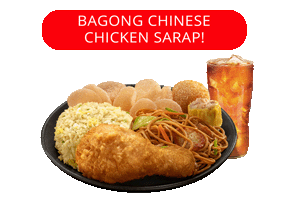 A complete meal of crunchier, juicier, All-new Chinese Sarap Chicken, Egg Fried Rice, Half-serving Pancit,Siomai, Chicharap, and Buchi with Drink.