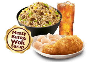 Meaty-Busog, Wok-Sarap Beef Chao fan paired with 1pc Chinese-style Fried Chicken.