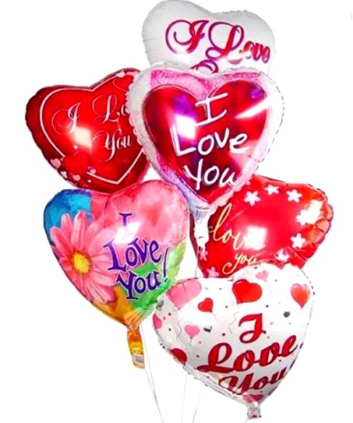 6 different kinds of I love you Mylar Balloons.