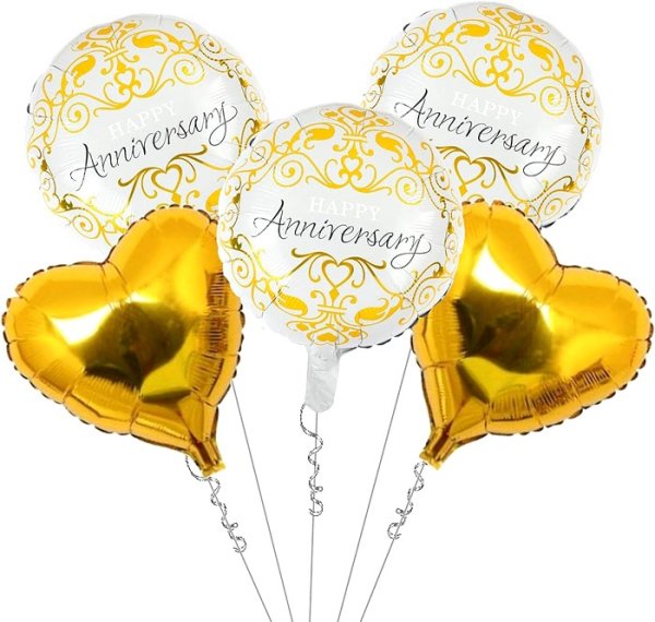 3 Anniversary White and Gold Mylar Balloon with 2 Gold heart mylar balloon.