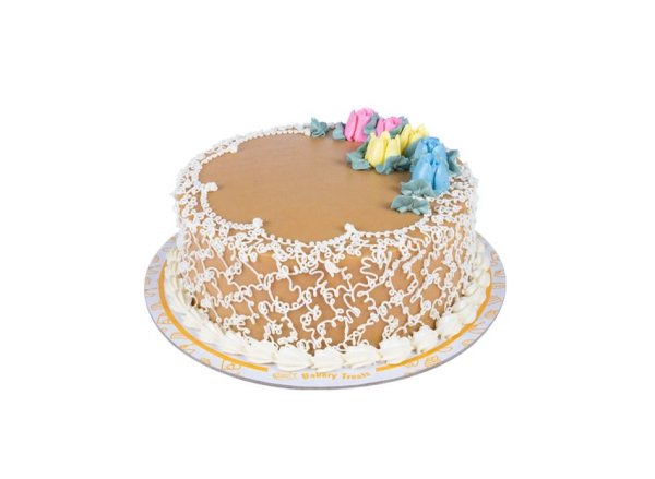Deliciously soft chiffon cake with melt-in-your-mouth caramel icing and filling, topped with buttercream flowers. Personalize this cake with a sweet dedication for your friends and loved ones (input in the request box below; maximum of 5 words).