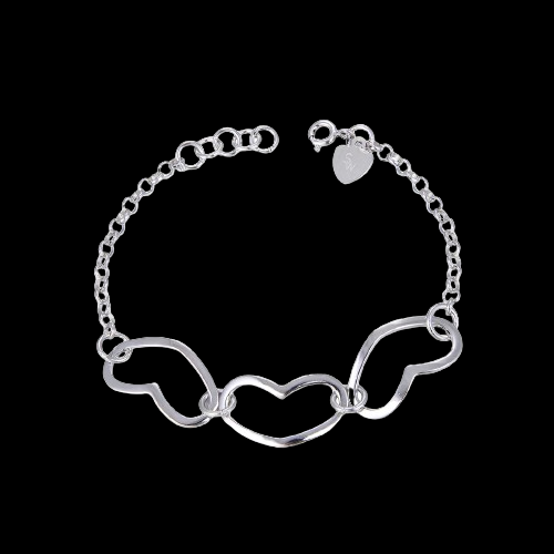 Cop this polished piece. Cathleen is a sterling silver Rolo chain bracelet with open chained heart charms. Perfect for everyday use. [Stock Number: B5290]