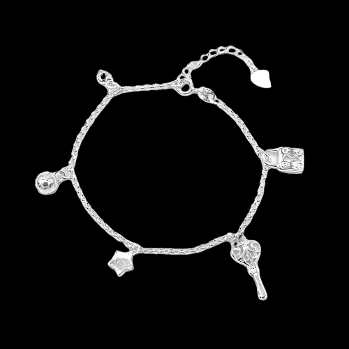Show off all you different charms with the Chaya, a Rolo chain bracelet with a puff heart, ball, star, key, and lock charm in polished in sterling silver. Perfect your casual everyday wear with this piece.[Chain Size: 6.5" with 1.5" Extender]