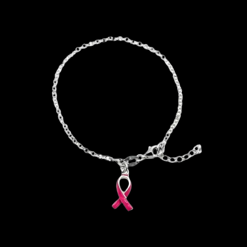 Dainty Rolo Chain Bracelet with Pink Enamel Ribbon[Stock Number: B4866]