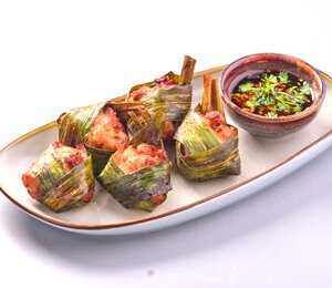 Boneless chicken marinated in a concoction of spices and seasoning then wrapped in Pandan leaves.