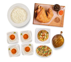 Crispy Pata Regular, Patis Chicken Skin, Chopsuey, Sotanghon Guisado, Plain Rice Platter, Iced Tea Pitcher and 4 pcs Leche Flan.