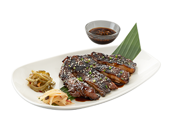 Grilled chicken fillet topped with sesame seeds and served with papaya & ampalaya atchara