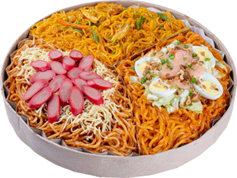 Dencio’s 3 favorite bilaos in 1: Palabok, Pinaputok na Pancit, and Pinoy Spaghetti. Di na kailangan mamili, perfect for any handaan! Serving Size: 11-15 persons