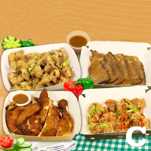 Roast Beef w/ Gravy, Fish Fillet Oriental, Salt & Pepper Squid and Roasted Chicken 1/2