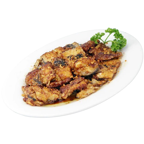 Slices of boneless bangus, pan-fried with a light soy sauce and infused with garlic
