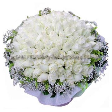 This bouquet of 99 white roses will sweep you away in a wave of purity. Clean, elegant and evoking bliss, the white roses will fill you with a sense of calm immediately.