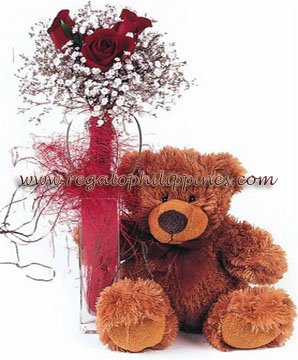 Sweet Thoughts Roses With Teddy.Six Roses In Vase with Teddy!