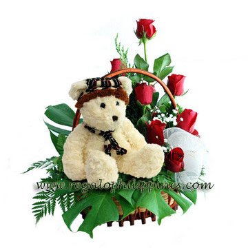 12 red roses with lots of green fillers with 8 inches cute teddy bear and one valentine card is perfect gift hamper for this valentine day.